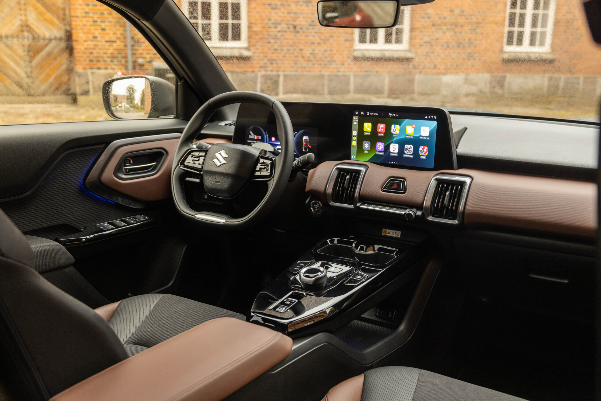 Under den centrale skærm er der knapper til betjening af fx ventilationsanlægget, og det er muligt at bruge stemmekommandoer til fx at skrue op/ned for temperaturen eller tænde/ slukke for varmen i sædet eller rattet. I det hele taget har Suzuki arbejdet på, at det skal være nemt og intuitivt, at sætte sig ind, køre og betjene bilen.
